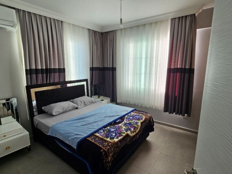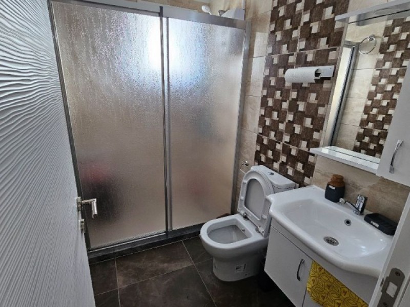 Tv ünitesi oturma odası takımı her iki yatak odasında ortapedik bazalı yatak yemek masası tabak bardak ve çatal bıçak çeşitleri
